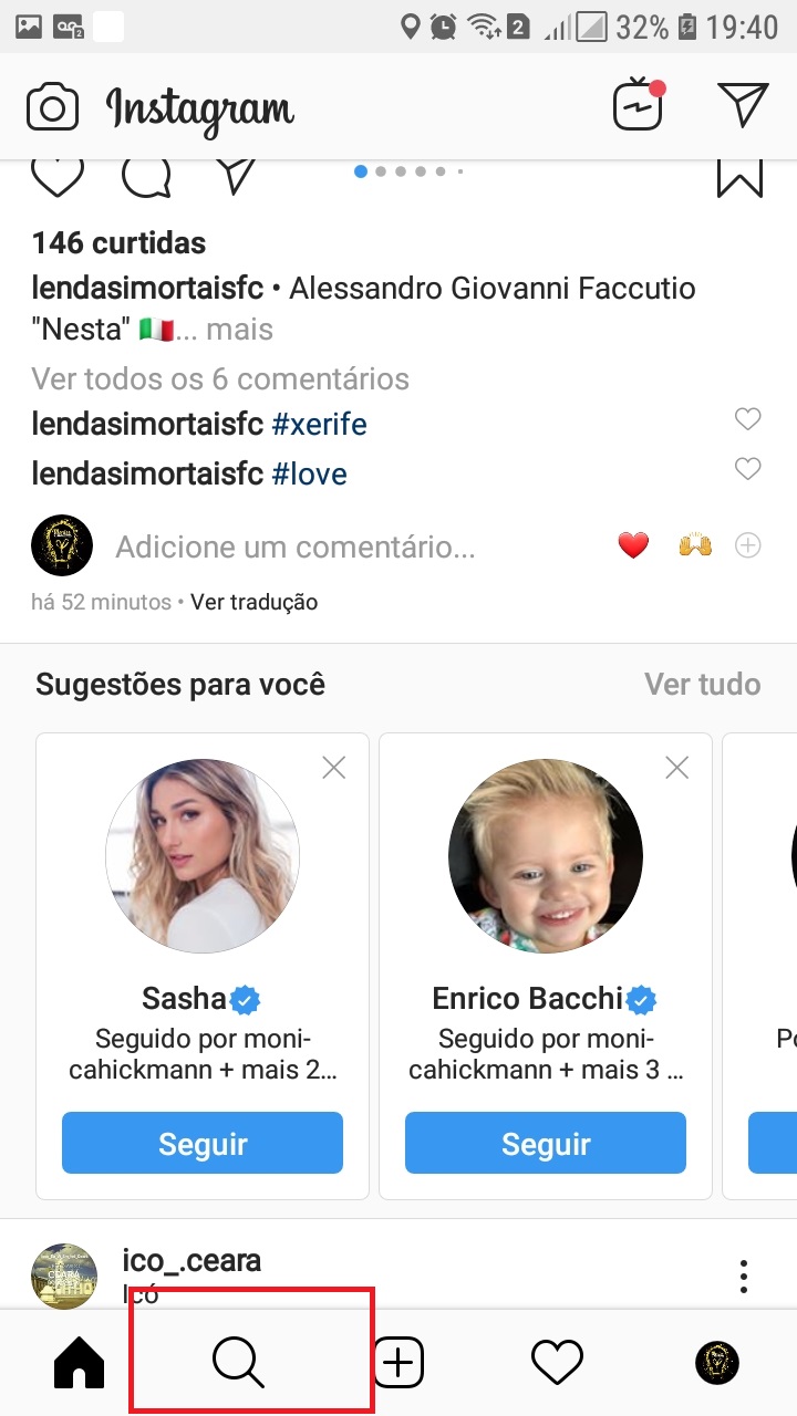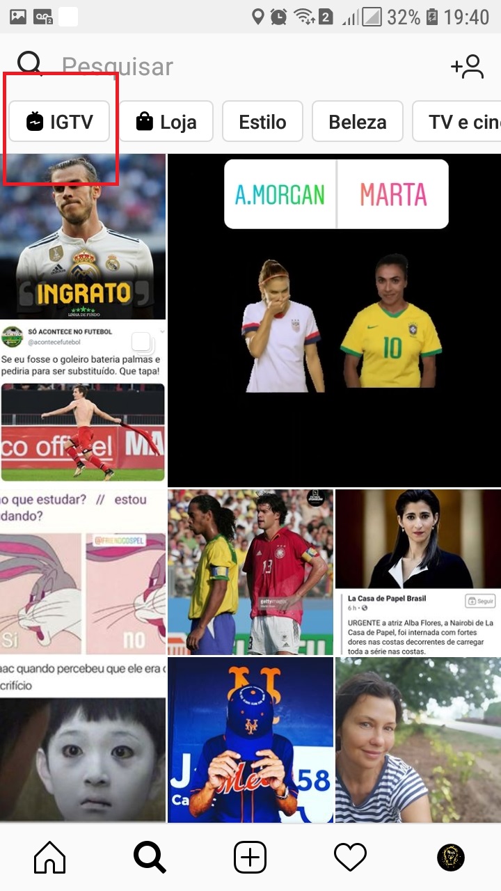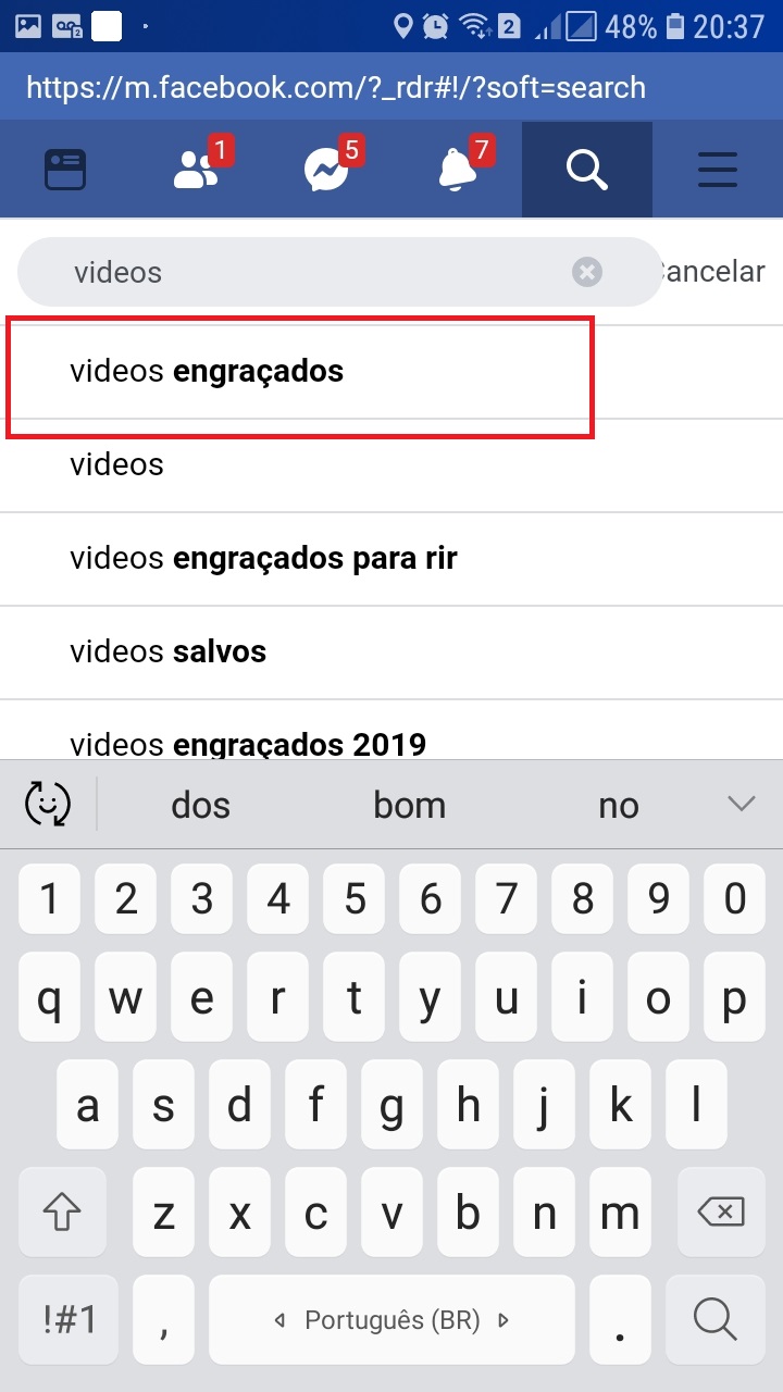 4 – Após acessar o seu facebook é hora de buscar um vídeo, então clique na aba pesquisar, eu procurei por “Vídeos Engraçados”