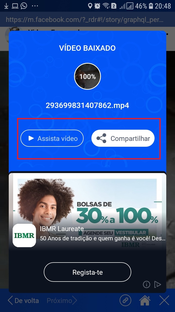 8 – Pronto, seu foi ja foi baixado, agora só escolher o que vai fazer com seu vídeo, você pode assistir ou compartilhar direto do próprio app.